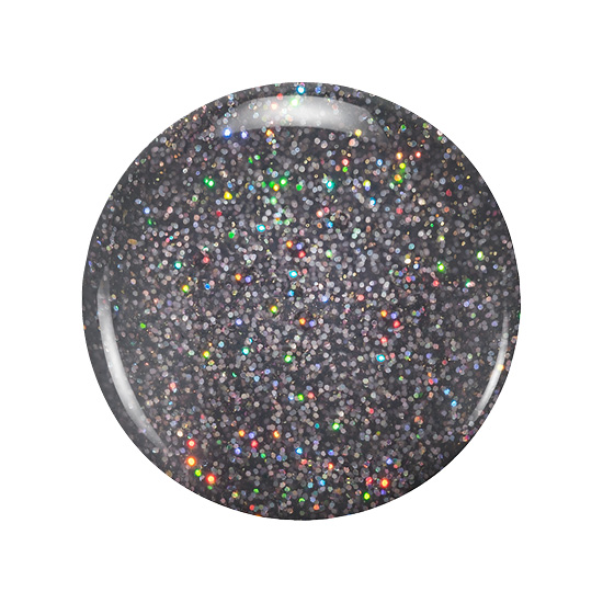 Теплый серый оттенок с ослепительным блеском голографических блесток.